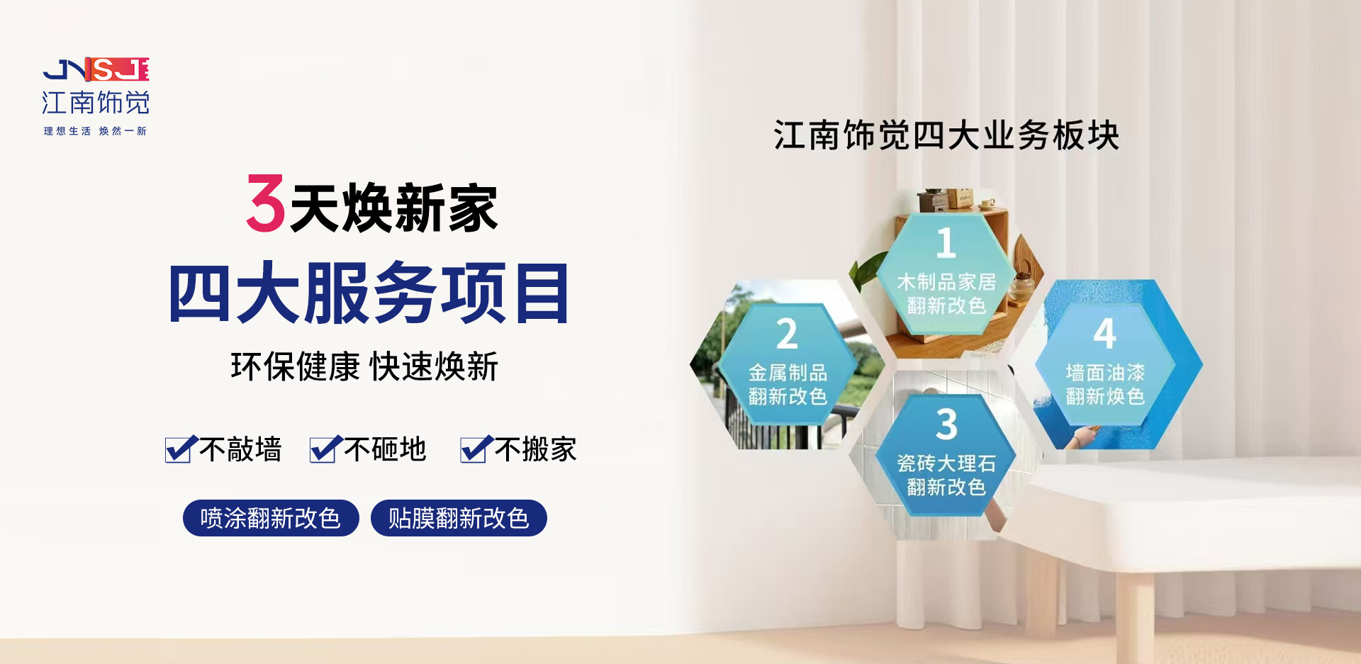 品牌介紹BRAND INTRODUCTION江南飾覺(jué)家居煥新連鎖品牌誕生于2023年,由浙江家居修護(hù)行業(yè)優(yōu)秀一眾人士共同創(chuàng)建,總部坐落于浙江溫州,是一家專(zhuān)業(yè)致力于家居煥新改造連鎖品牌,老房陳舊裝修家居煥新、省錢(qián)、省心、快捷、實(shí)現(xiàn)煥新家,為消費(fèi)者打造高···